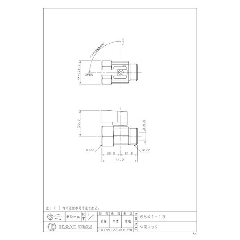 カクダイ 2224218 カクダイ 6541-13 中間コック #6541-13 1個(ご注文単位1個)【直送品】