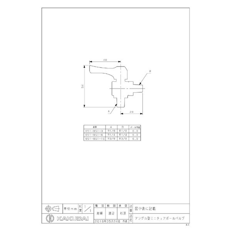 カクダイ 2227332 651-851-6アングル型ミニチュアボールバルブ #651-851-6 1個(ご注文単位1個)【直送品】