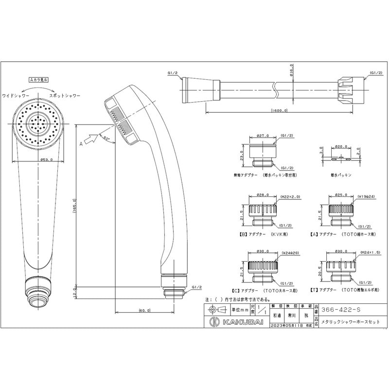 カクダイ 2235463 366-422-S MTシャワーホースセット S #366-422-S 1個(ご注文単位1個)【直送品】