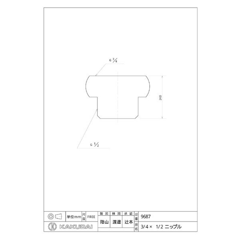 カクダイ 2226595 カクダイ 9687 3/4×1/2ニップル #9687 1個(ご注文単位1個)【直送品】