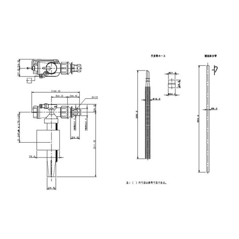 本体取付穴:22~25/取付ピッチ:85/ホース長さ:1.45