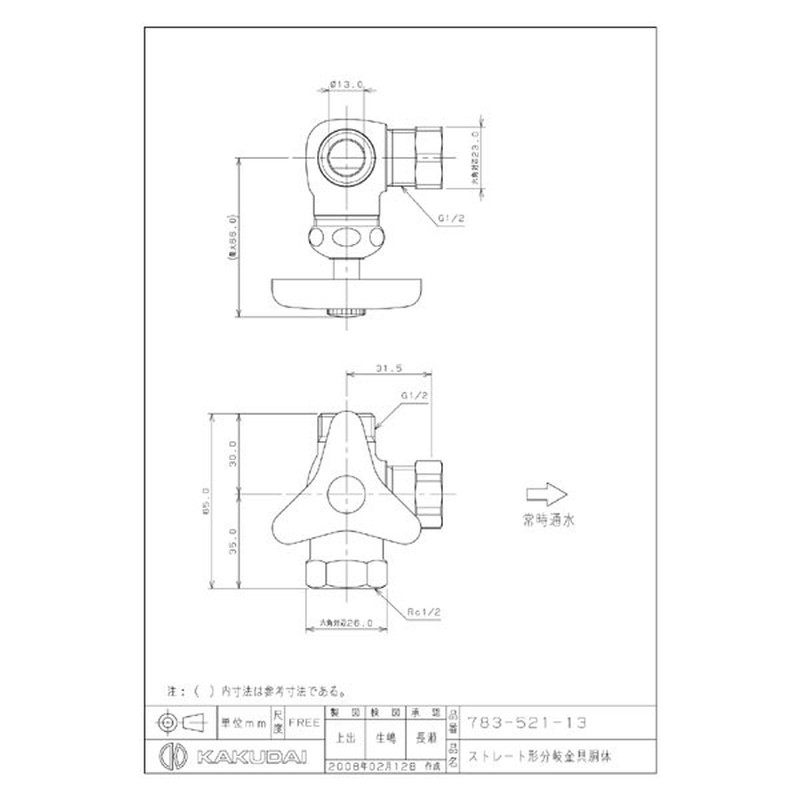 カクダイ 2225699 783-521-13 ストレート分岐金具胴体 #783-521-13 1個(ご注文単位1個)【直送品】