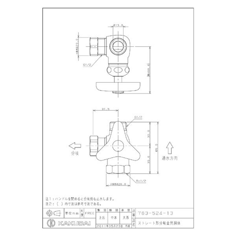 カクダイ 2225702 783-524-13 ストレート分岐金具胴体 #783-524-13 1個(ご注文単位1個)【直送品】