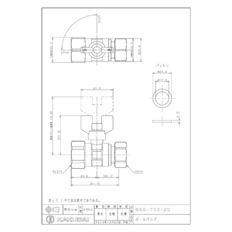 カクダイ 2228237 カクダイ 650-703-20 ボールバルブ #650-703-20 1個(ご注文単位1個)【直送品】
