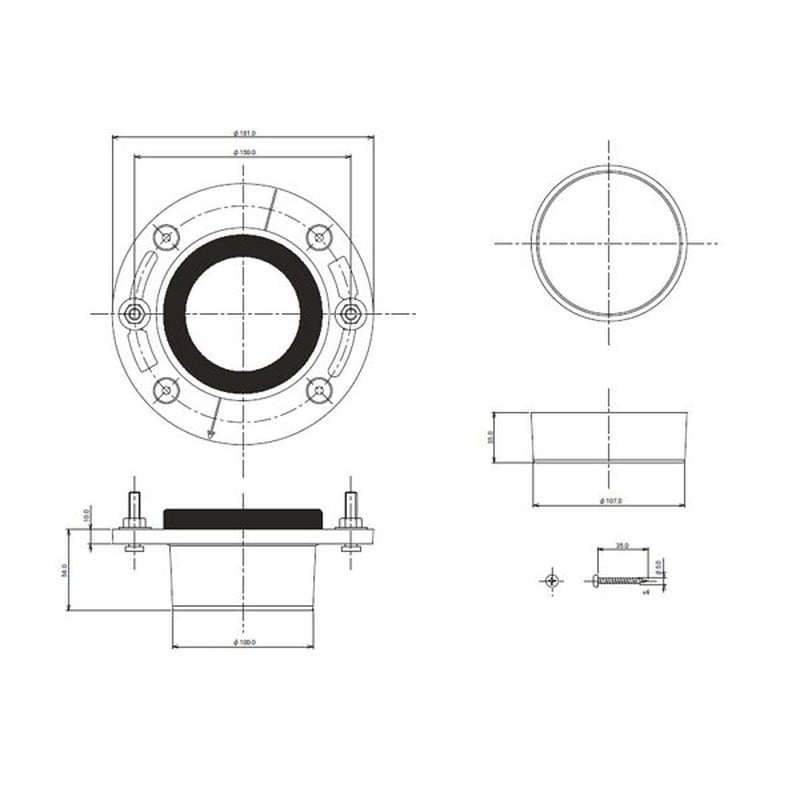 カクダイ 2221778 4658S-100大便器床フランジステンビス付 #4658S-100 1個(ご注文単位1個)【直送品】