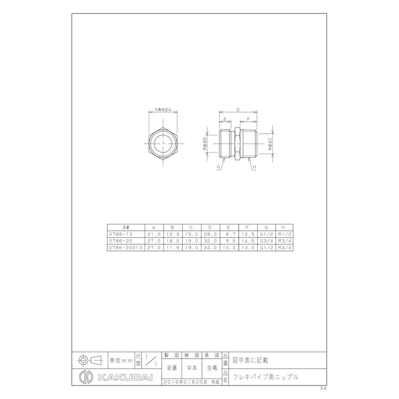 カクダイ 2225150 0786-20×13 フレキパイプ用ニップル #0786-20X13 1個(ご注文単位1個)【直送品】