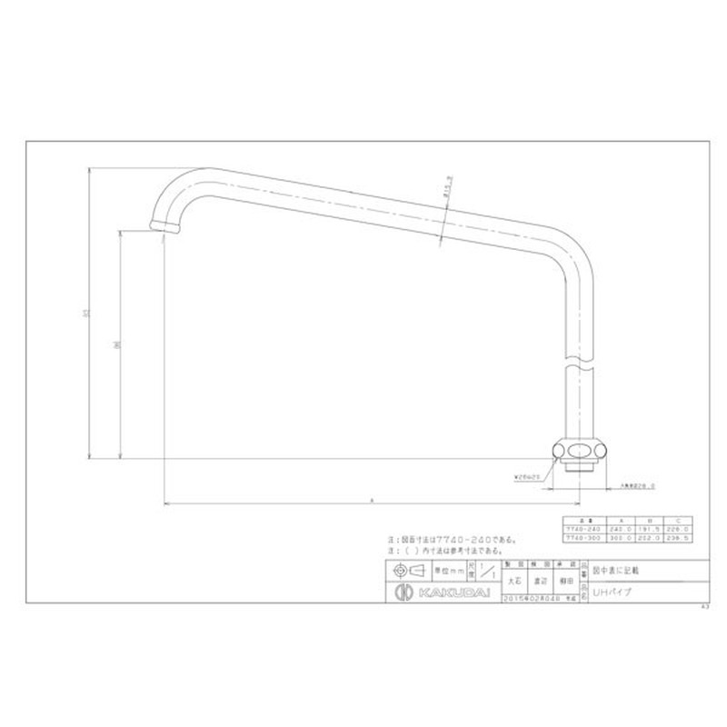 カクダイ 2225656 UHパイプ #7740-240 1個(ご注文単位1個)【直送品】