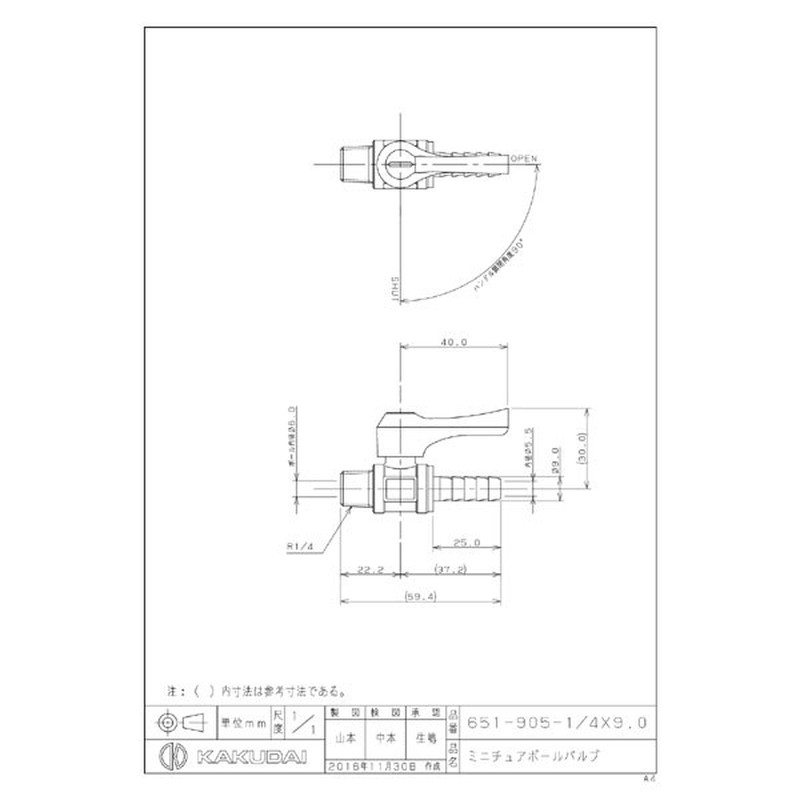 カクダイ 2227363 651-905-1/4×9.0 ミニボールバルブ #651-905-1/4X9.0 1個(ご注文単位1個)【直送品】