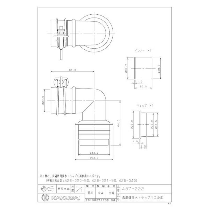 カクダイ 2229605 洗濯機排水トラップ用エルボVP #437-222 1個(ご注文単位1個)【直送品】