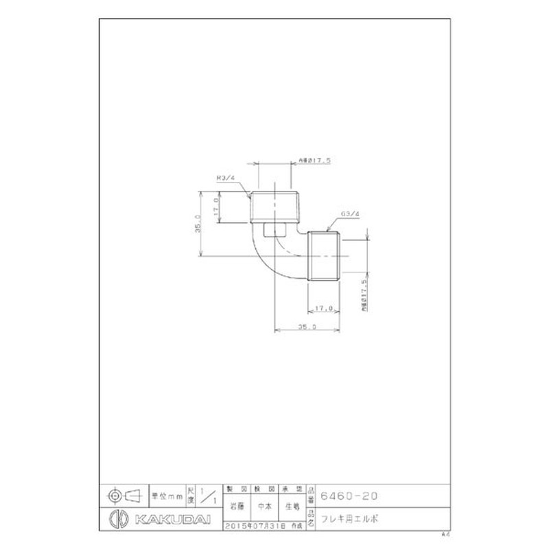 カクダイ 2223764 フレキ用エルボ #6460-20 1個(ご注文単位1個)【直送品】