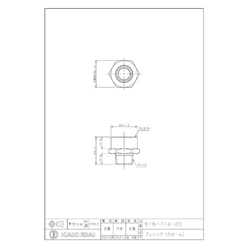 カクダイ 2229761 616-714-20 ブッシングクローム #616-714-20 1個(ご注文単位1個)【直送品】