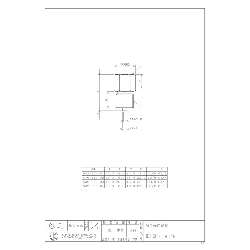 カクダイ 2227214 649-850-01 圧力計ジョイント #649-850-01 1個(ご注文単位1個)【直送品】