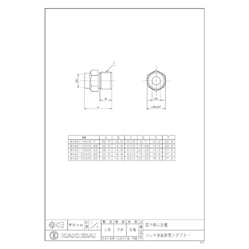 カクダイ 2223284 6182-13×15.88 銅管アダプター #6182-13X15.88 1個(ご注文単位1個)【直送品】