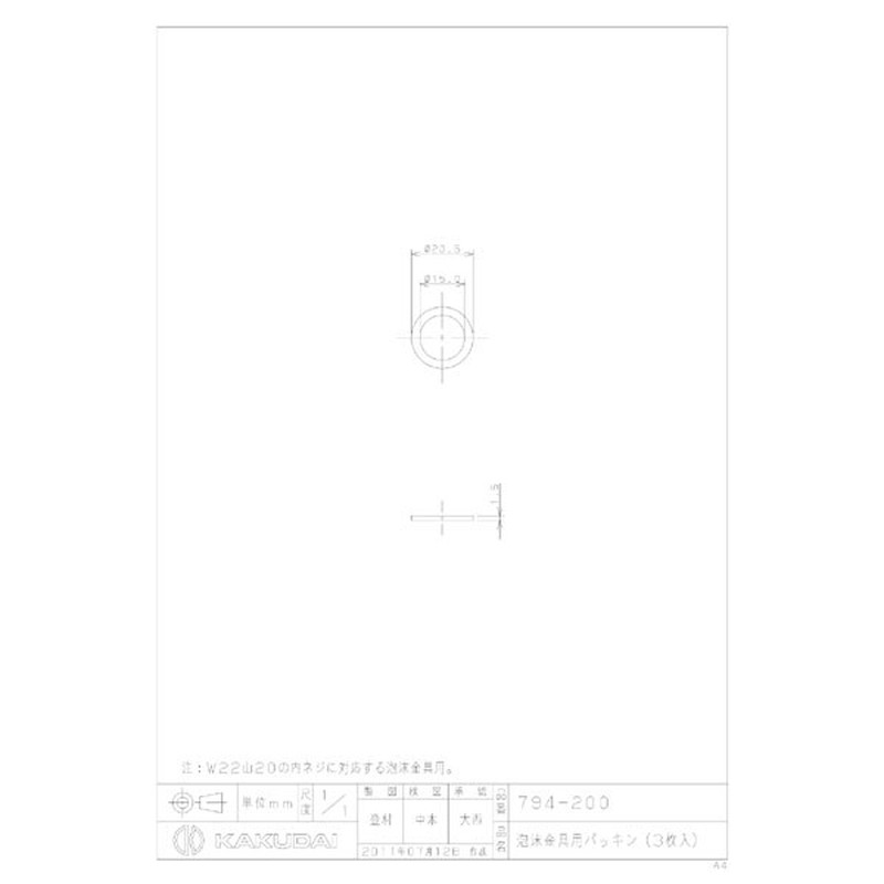 カクダイ 2225909 カクダイ 794-200 泡沫金具用パッキン #794-200 1個(ご注文単位1個)【直送品】