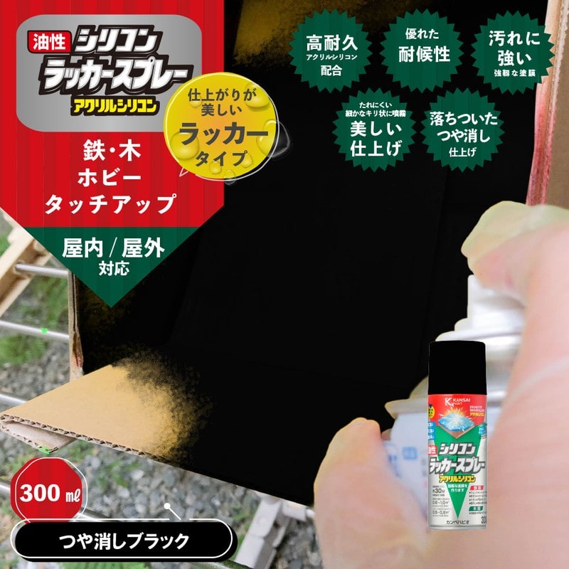 カンペハピオ 9002121 油性シリコンラッカースプレーつや消しBK300ML #00587644092300 1個(ご注文単位1個)【直送品】