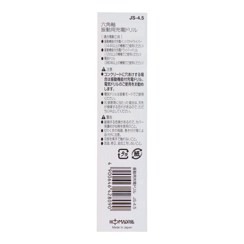 コマドリル 4342925 六角軸振動用充電ドリル 4.5mm #076710 1個(ご注文単位1個)【直送品】