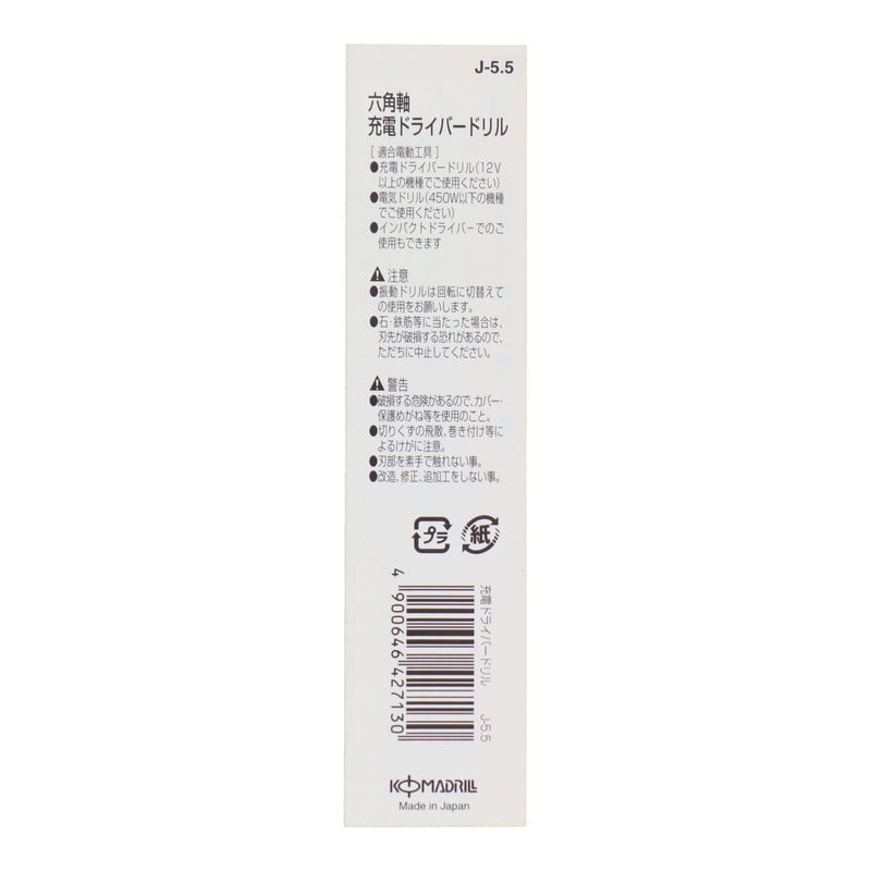 コマドリル 4340156 六角軸充電ドライバードリル 5.5mm #076614 1個(ご注文単位1個)【直送品】