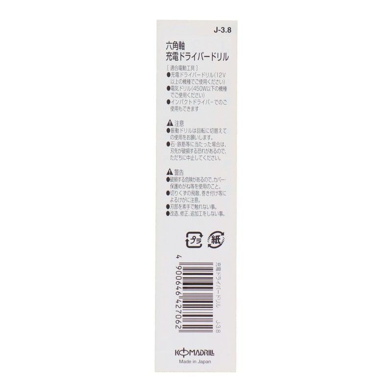 コマドリル 4340148 六角軸充電ドライバードリル 3.8mm #076607 1個(ご注文単位1個)【直送品】