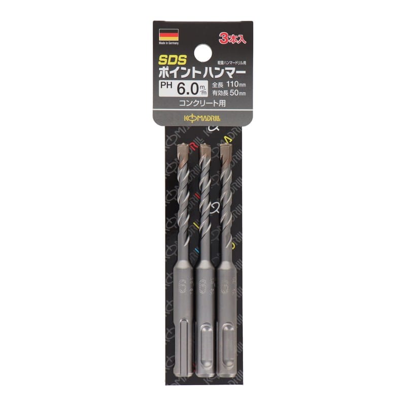 コマドリル 4342986 SDSポイントハンマードリル 3本組 6.0mm #076474 1個(ご注文単位1個)【直送品】