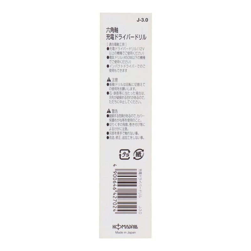 コマドリル 4340144 六角軸充電ドライバードリル 3.0mm #076603 1個(ご注文単位1個)【直送品】