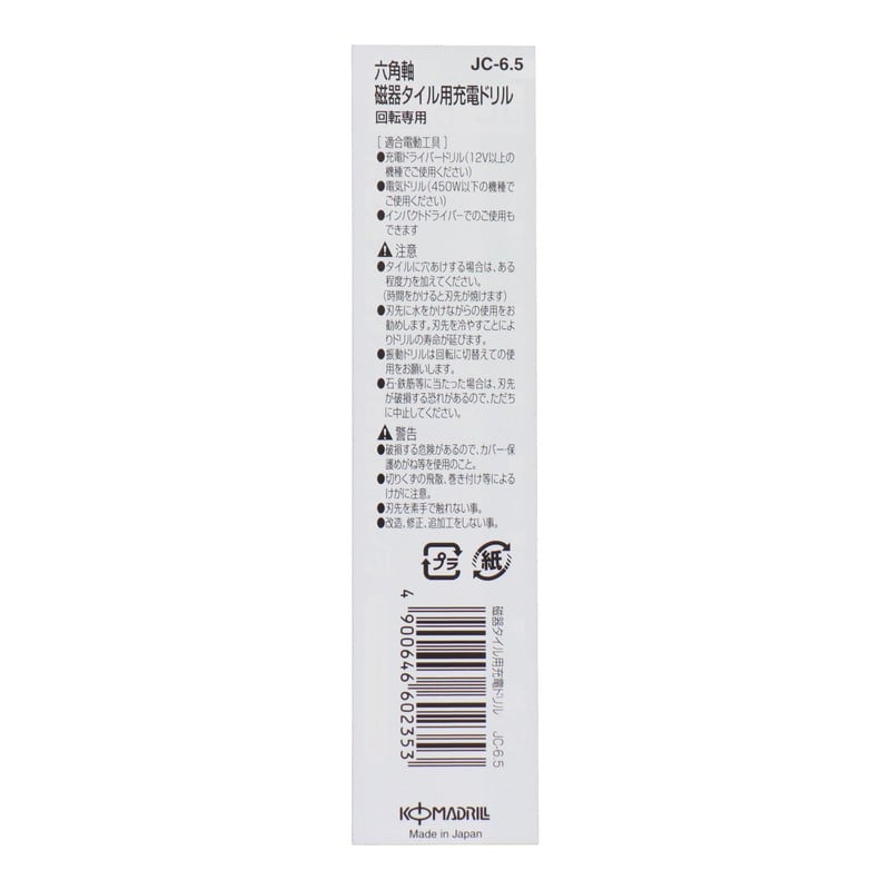 コマドリル 4342908 六角軸磁器タイル用充電ドリル 6.5mm #076665 1個(ご注文単位1個)【直送品】