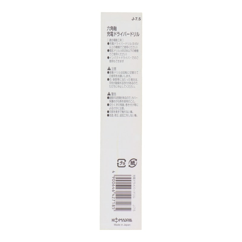 コマドリル 4340161 六角軸充電ドライバードリル 7.5mm #076619 1個(ご注文単位1個)【直送品】