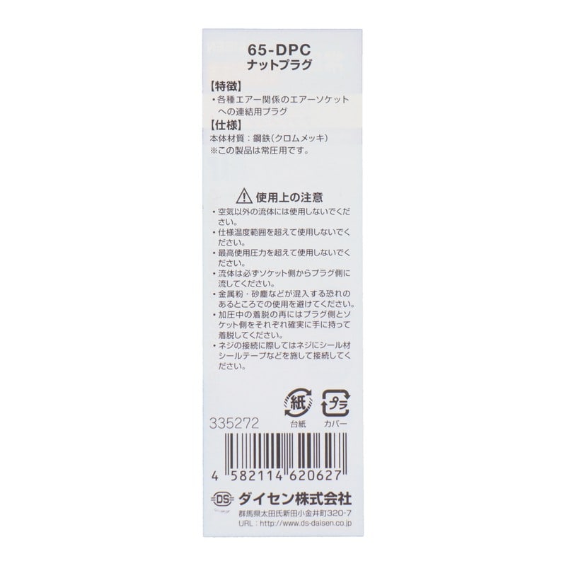 ダイセン 4342845 ナットプラグウレタンホース接続用凸プラグ #335272 1個(ご注文単位1個)【直送品】