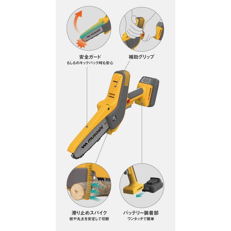 ムサシ 317066 PCS-6001充電式ハンディ&ポールチェーンソー 1個(ご注文単位1個)【直送品】