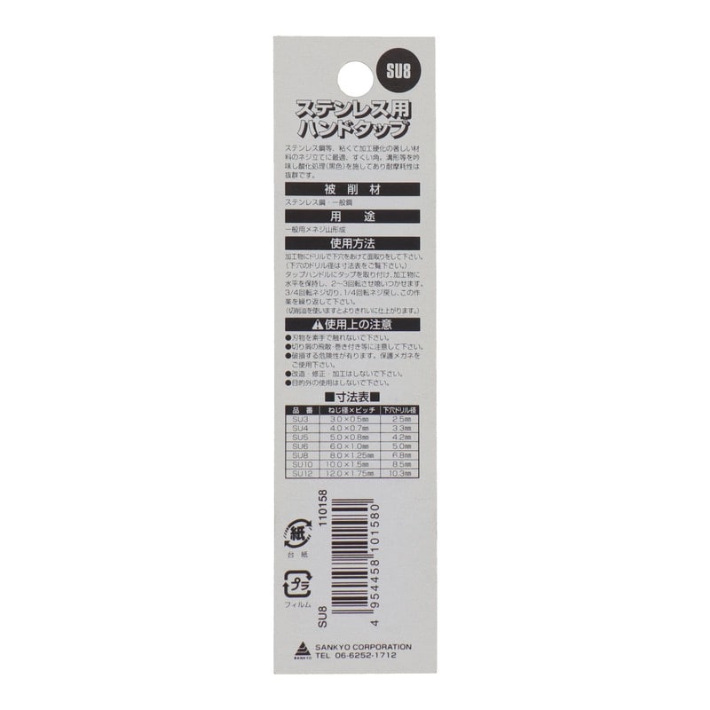 ヤマワ 4343849 ハンドタップねじ 径8.0×ピッチ1.25 #110158 1個(ご注文単位1個)【直送品】