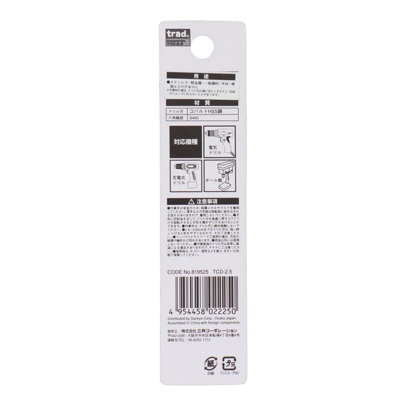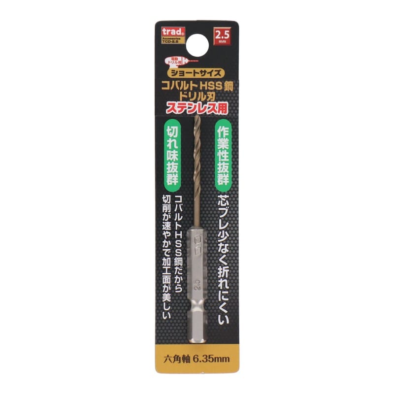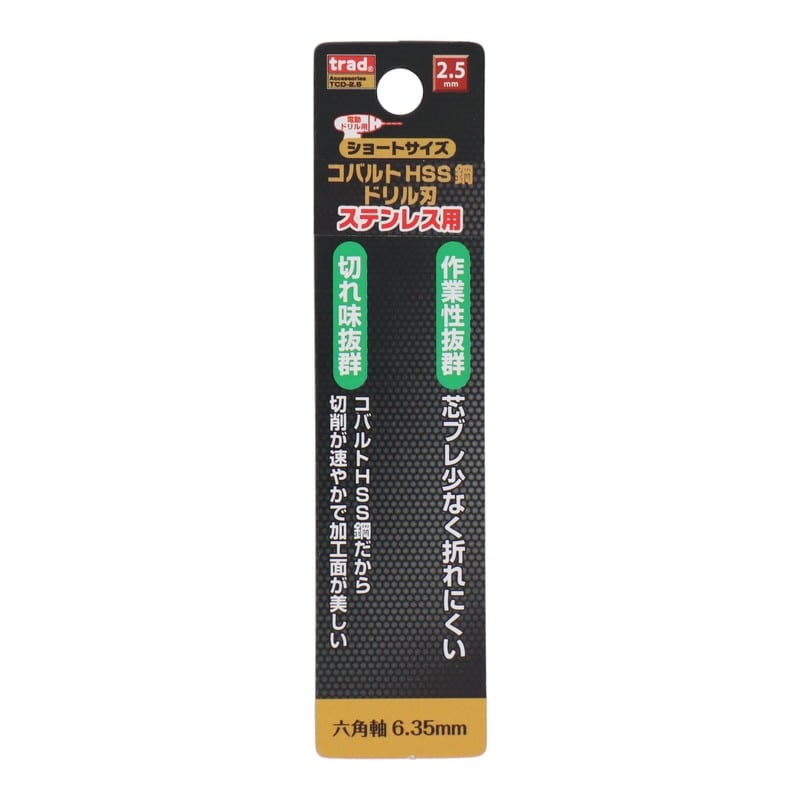 三共コーポレーション 434270 六角軸ショートコバルトドリル 2.5mm #819525 1個(ご注文単位1個)【直送品】