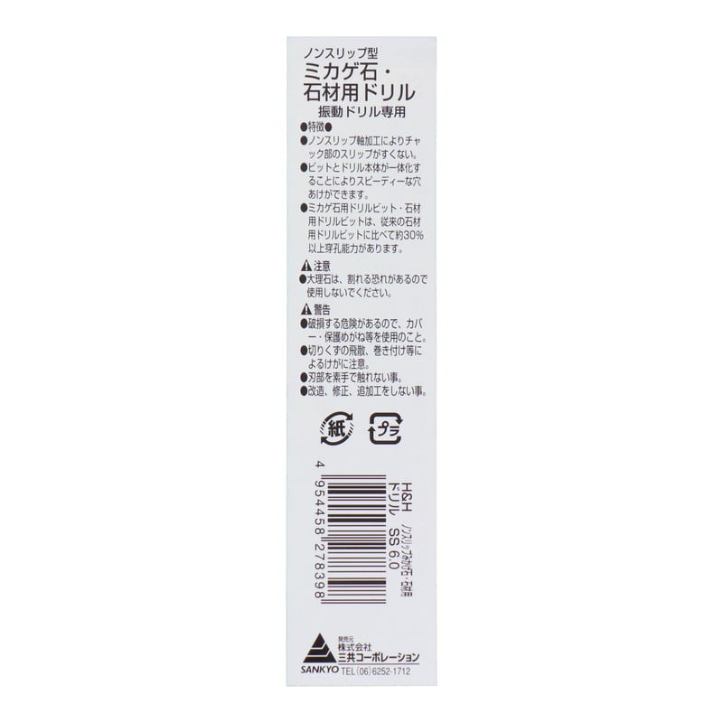 三共コーポレーション 503534 ノンスリップ型ミカゲ石・石材用ドリル 6.0mm #076360 1個(ご注文単位1個)【直送品】