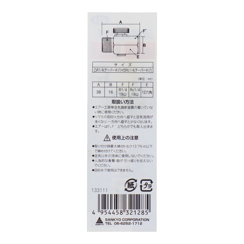 三共コーポレーション 510316 流量調整器 2MX2F 1個(ご注文単位1個)【直送品】