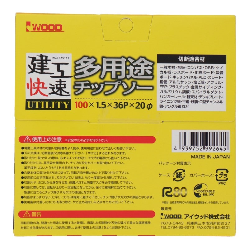 三共コーポレーション 4341010 多用途チップソー 100×1.5×36P #004591 1個(ご注文単位1個)【直送品】