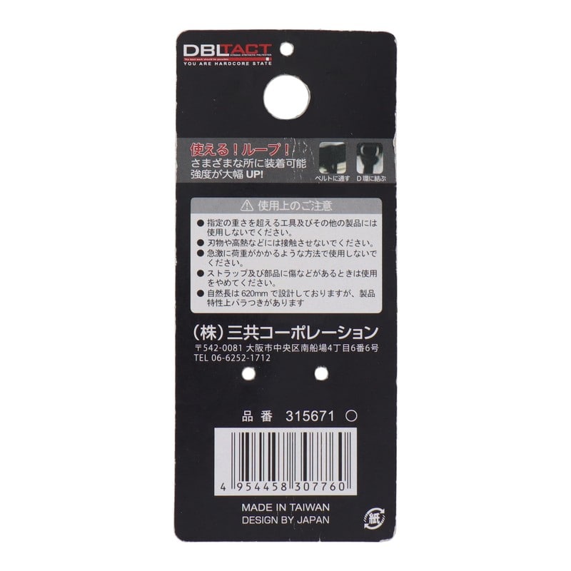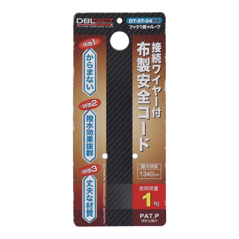 三共コーポレーション 4342059 布製安全コード使用荷重1kg フック1個 BK #315671 1個(ご注文単位1個)【直送品】