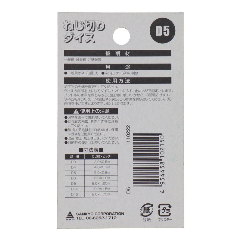 三共コーポレーション 4343881 ねじ切りダイス外径38mmねじ径5.0mm #110222 1個(ご注文単位1個)【直送品】