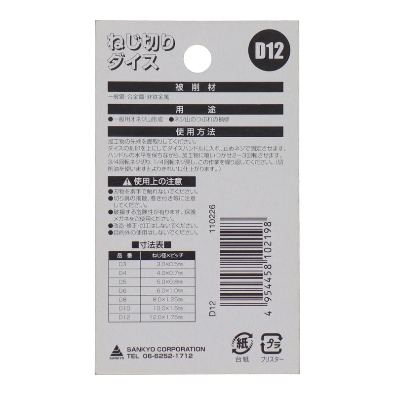 三共コーポレーション 4343885 ねじ切りダイス外径38mmねじ径12mm #110226 1個(ご注文単位1個)【直送品】
