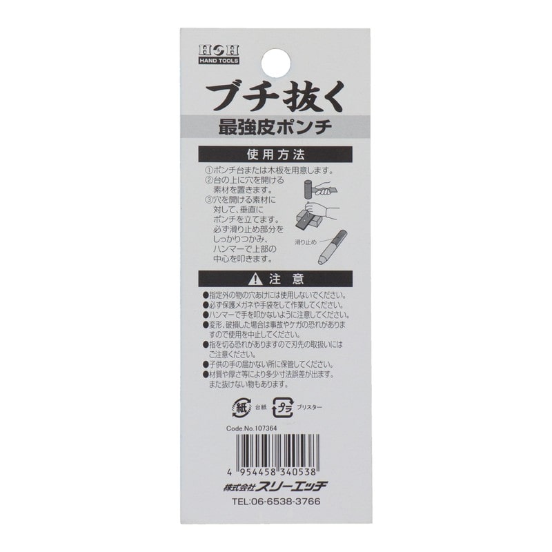 三共コーポレーション 4347671 ブチ抜く最強皮ポンチ 12mm #107364 1個(ご注文単位1個)【直送品】