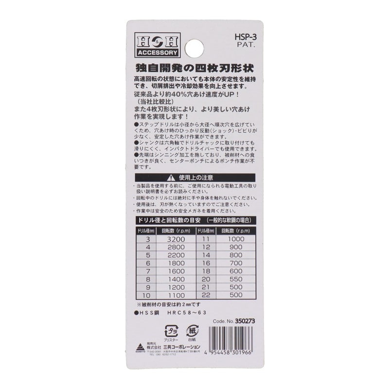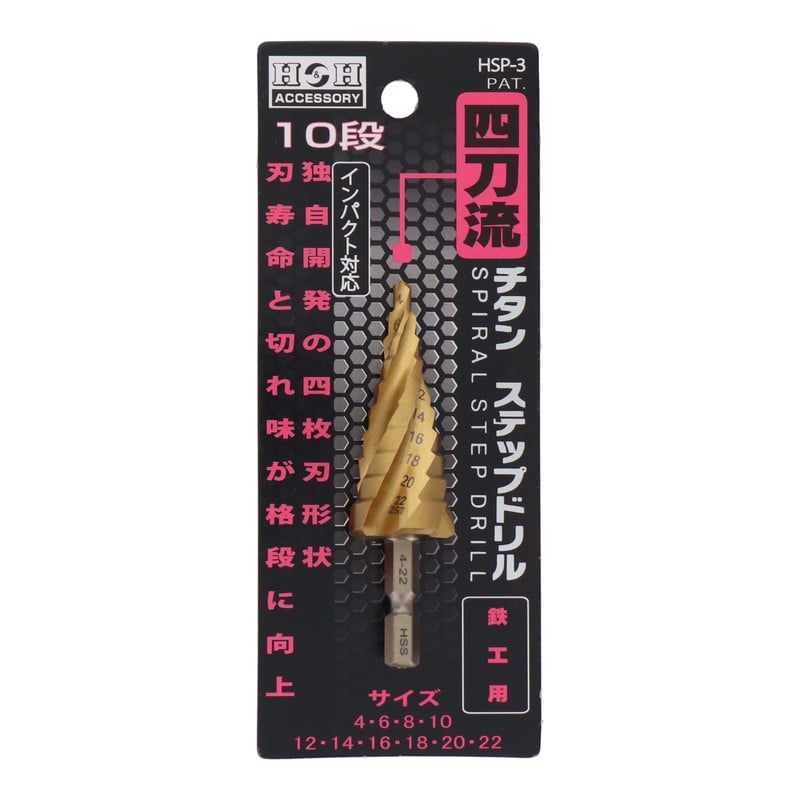 三共コーポレーション 4341710 四刀流 チタンステップドリル 10段 4-22mm #350273 1個(ご注文単位1個)【直送品】