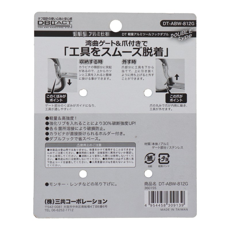 三共コーポレーション 4351921 アルミツールフックダブル湾曲ゲート×爪付きガンメタ #360155 1個(ご注文単位1個)【直送品】
