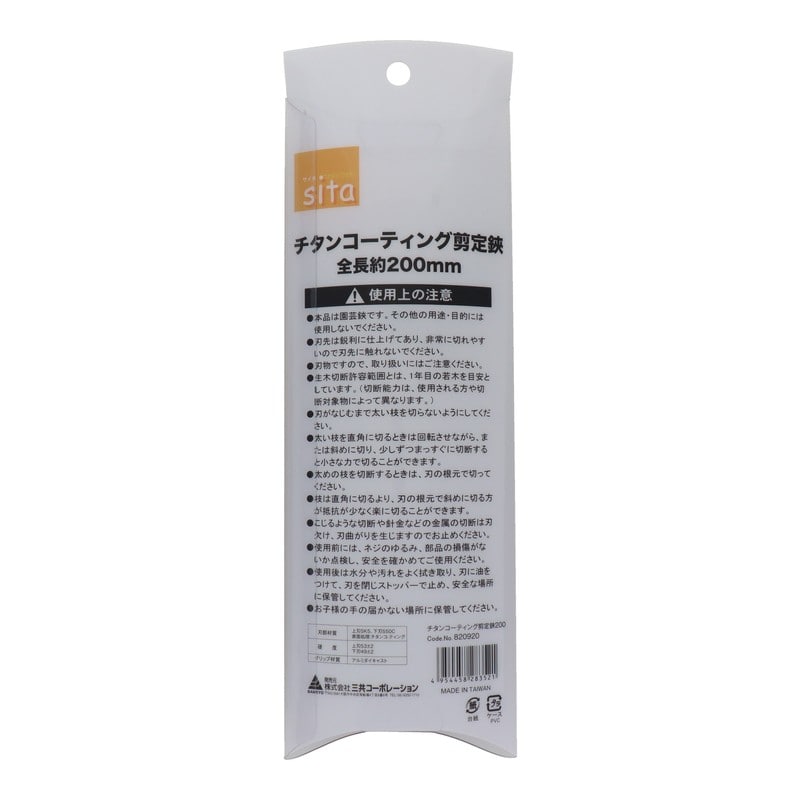 三共コーポレーション 4348901 WOOD STYLE チタンコーティング 剪定鋏 A820 1個(ご注文単位1個)【直送品】