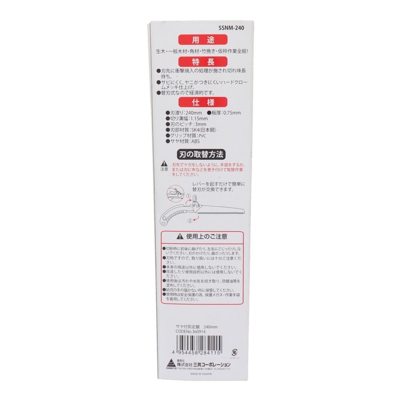 三共コーポレーション 4349050 サヤ付替刃式剪定鋸 240mm SSNM-240 1個(ご注文単位1個)【直送品】