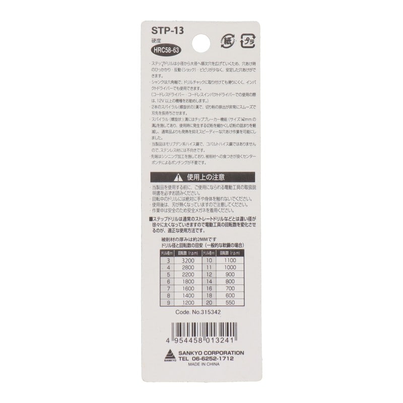 三共コーポレーション 4342027 ステップドリル ハイス鋼材 12段 3-14mm #315342 1個(ご注文単位1個)【直送品】