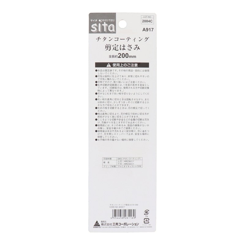 三共コーポレーション 109035 チタンコーティング 剪定はさみ #820917 1個(ご注文単位1個)【直送品】