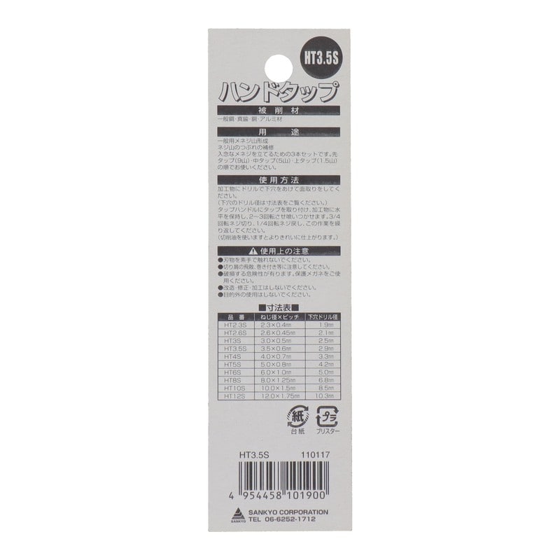 三共コーポレーション 4343834 ハンドタップセット ねじ径3.5×ピッチ0.6mm #110117 1個(ご注文単位1個)【直送品】