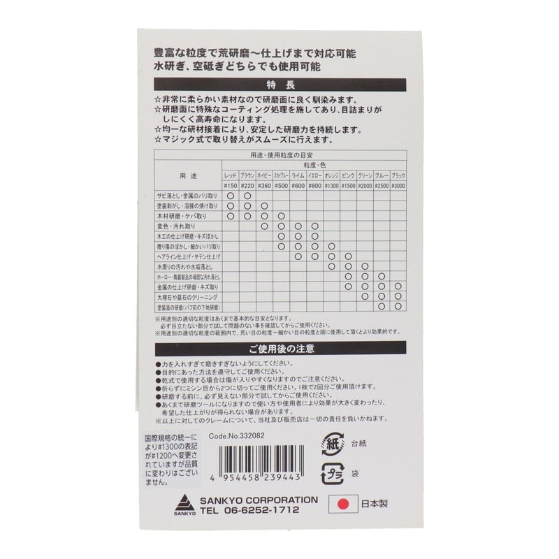 三共コーポレーション 4071321 研磨シート中目セット#500/#800/#1200 #332082 1個(ご注文単位1個)【直送品】