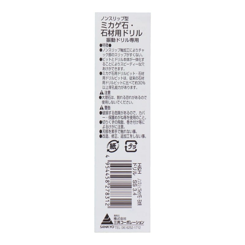 三共コーポレーション 503525 ノンスリップ型ミカゲ石・石材用ドリル 3.4mm #076334 1個(ご注文単位1個)【直送品】
