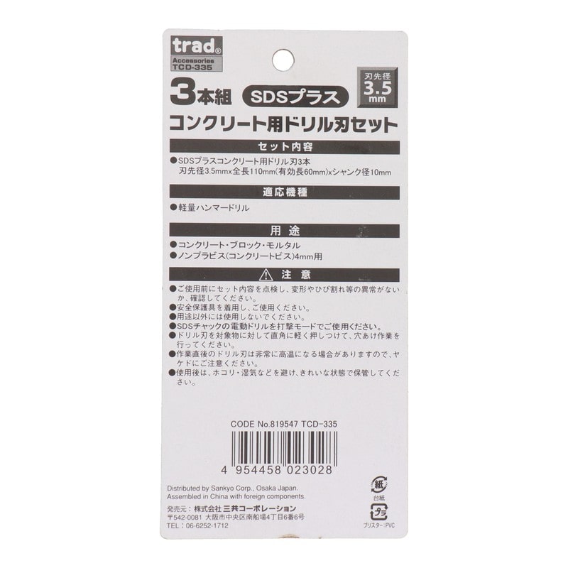 三共コーポレーション 434429 コンクリート用ドリル刃セット 3本組 3.5mm #819547 1個(ご注文単位1個)【直送品】