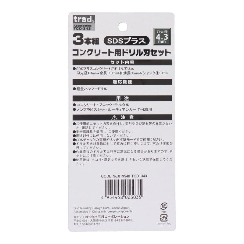 三共コーポレーション 434430 コンクリート用ドリル刃セット 3本組 4.3mm #819548 1個(ご注文単位1個)【直送品】