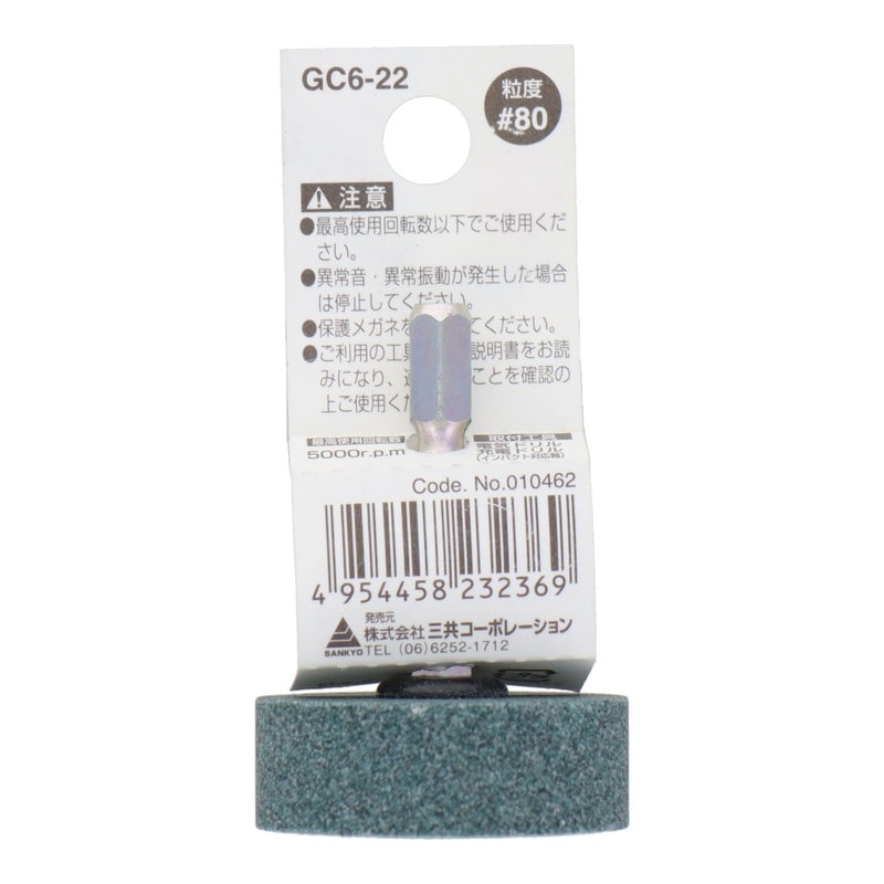 三共コーポレーション 4071309 GC6-22 六角軸軸付砥石 円筒型 #80 #010462 1個(ご注文単位1個)【直送品】