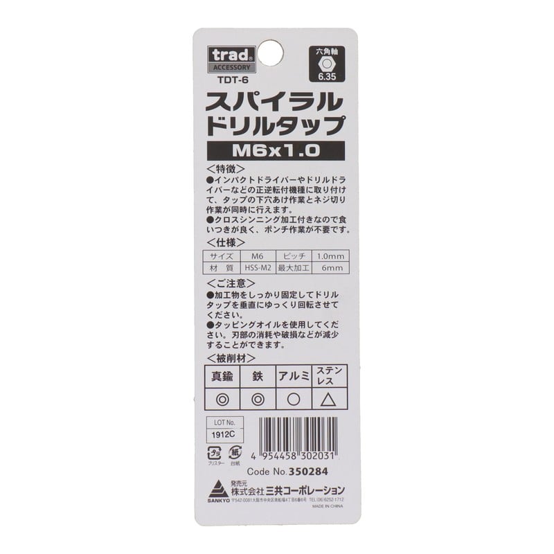 三共コーポレーション 4341721 スパイラルドリルタップ 貫通穴用 M6×1.0mm #350284 1個(ご注文単位1個)【直送品】